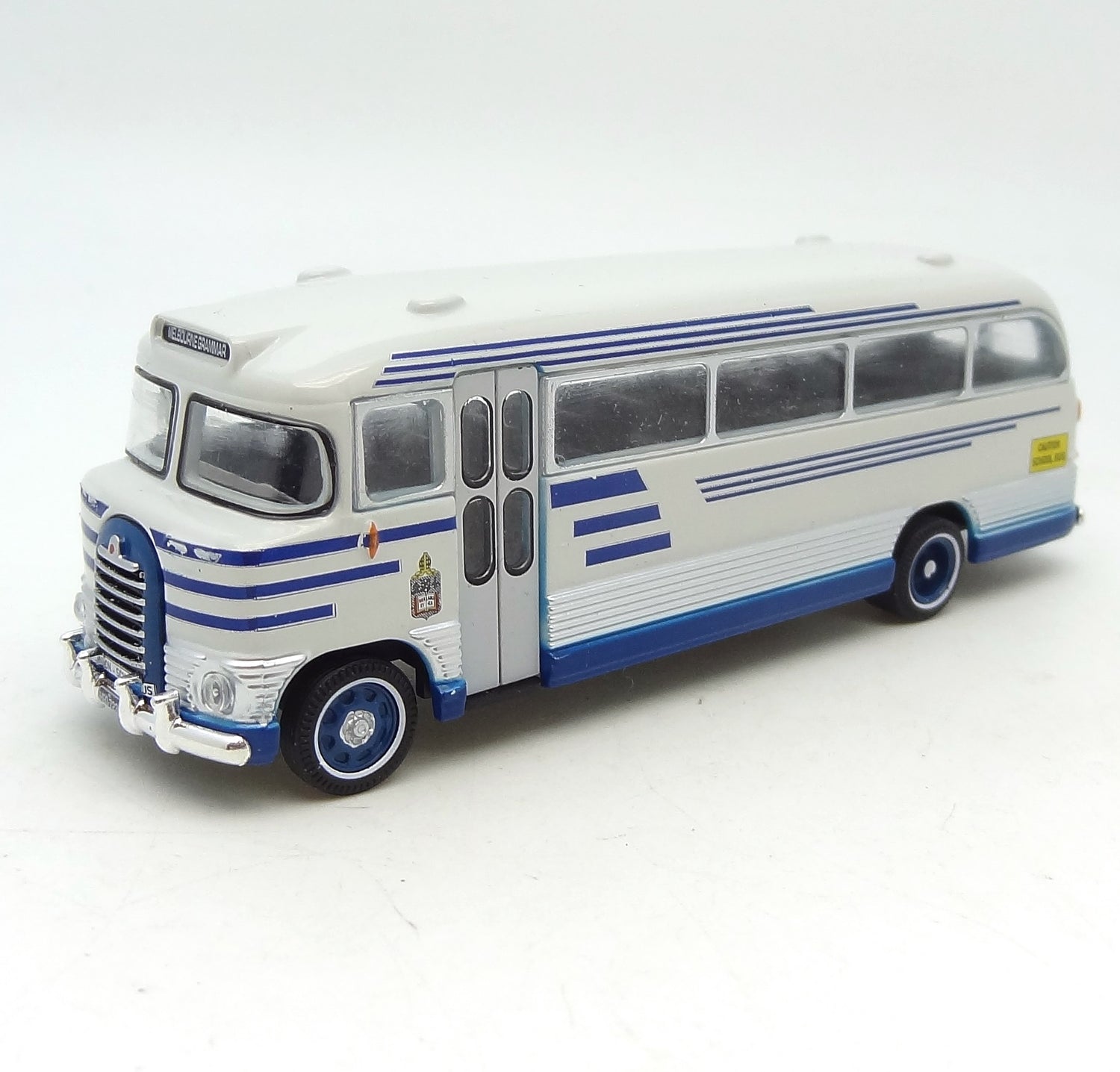 Beautifully detailed diecast 1:87 scale Australian Bedford SB MELBOURNE Grammar bus - only 400 pieces made - presented in a clear acrylic display case